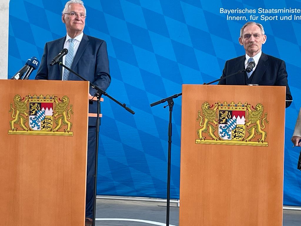 Berlin, 2023. június 6., kedd (MTI) – Bajorország és Magyarország egyaránt azt vallja, hogy a migrációs nyomás miatt jelentősen meg kell erősíteni az Európai Unió külső határának védelmét - közölte Joachim Herrmann bajor tartományi belügyminiszter kedden Würzburgban Pintér Sándor magyar belügyminiszterrel folytatott megbeszélése után.